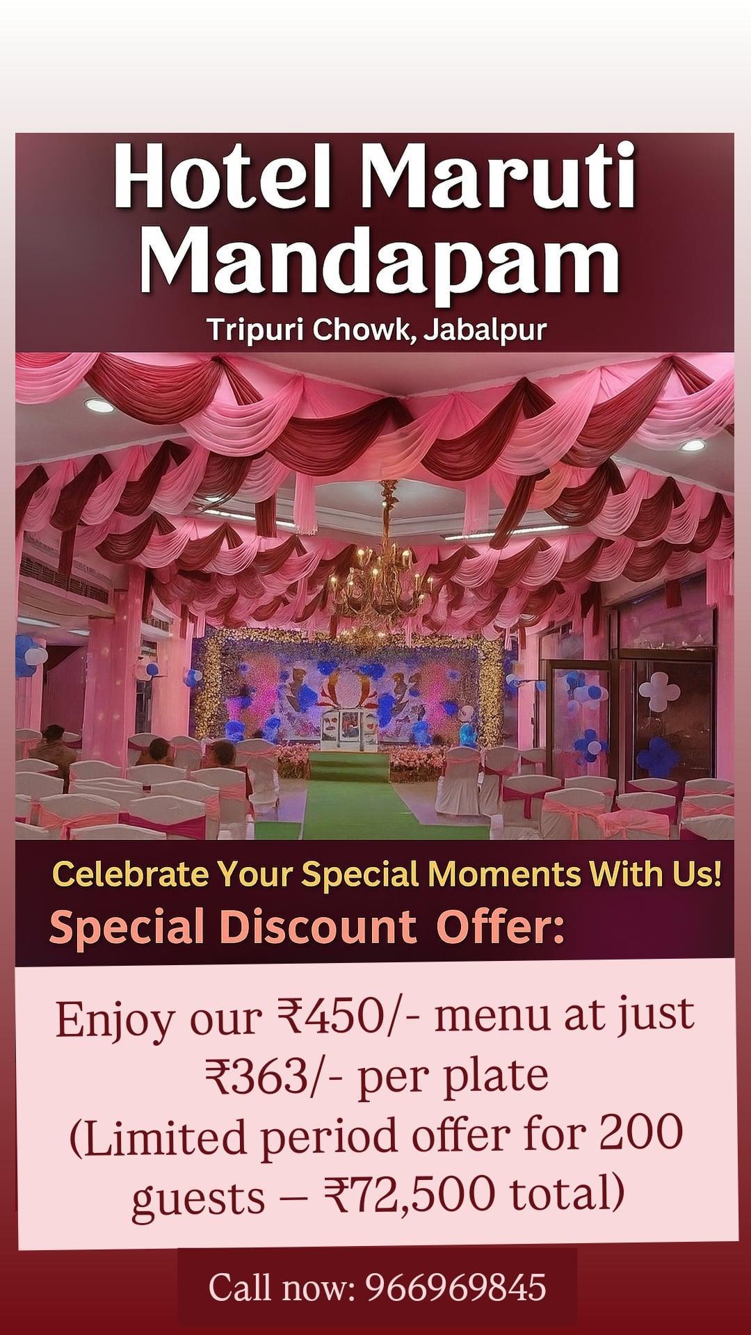 Hotel Maruti Mandapam is Situated on Main Nagpur Road, Tripuri Chowk Garha Jabalpur, Madhya Pradesh.